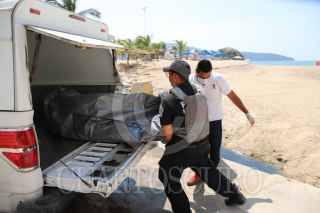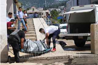 ACAPULCO, GUERRERO, 07OCTUBRE2019.- Un hombre al parecer trabajador de seguridad de un hotel fue asesinado con arma de fuego y encontrado en uno de los parianes localizados en la playa el Morro a un costado del hotel Playa Suites. Al lugar acudieron los policías municipales, ministeriales y peritos para realizar las diligencias del levantamiento, el cuerpo fue trasladado al servicio medico forense para realizarle la necropsia de ley. FOTO: BERNANDINO HERNÁNDEZ /CUARTOSCURO.COM