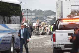 CIUDAD DE MÉXICO, 08OCTUBRE2019.- Al menos 15 personas resultaron lesionadas luego de que el conductor de una revolvedora de cemento perdiera el control de su unidad, volcara y chocara contra 11 vehículos y dos autobuses de pasajeros a la altura del kilómetro 15 de la Autopista Mexico-Toluca, en Santa Fe, alcaldía Álvaro Obregón. FOTO: CRISTIAN HERNÁNDEZ /CUARTOSCURO.COM
