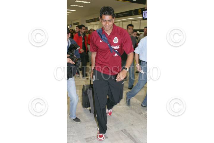 MEXICO, D.F., 04SEPTIEMBRE2005.- Aficionados de la selección mexicana, recibieron con pancartas a algunos de los jugadres, en su llegada en el Aeropuerto Internacional. FOTO: Moisés Pablo/CUARTOSCURO.COM