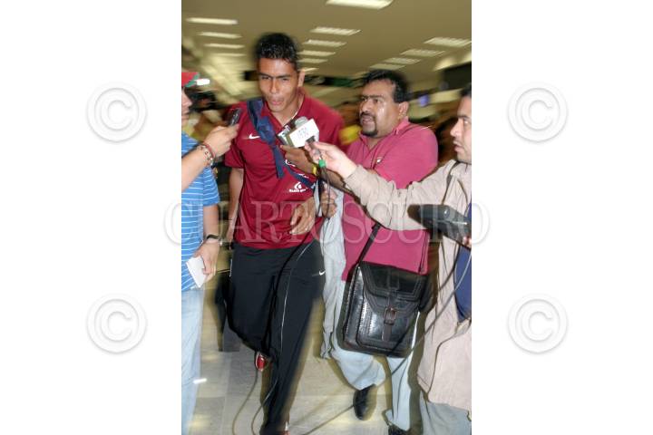 MEXICO, D.F., 04SEPTIEMBRE2005.- Aficionados de la selección mexicana, recibieron con pancartas a algunos de los jugadres, en su llegada en el Aeropuerto Internacional. FOTO: Moisés Pablo/CUARTOSCURO.COM