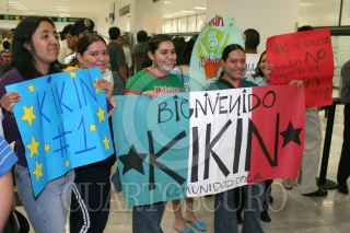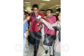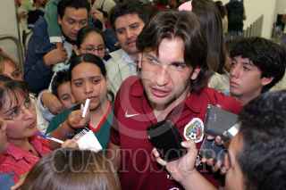 MEXICO, D.F., 04SEPTIEMBRE2005.- Aficionados de la selección mexicana, recibieron con pancartas a algunos de los jugadres, en su llegada en el Aeropuerto Internacional. FOTO: Moisés Pablo/CUARTOSCURO.COM