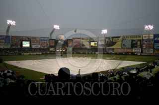 Saltillo, Coah. 03SEPTIEMBRE2005.- Saraperos de Saltillo vs Tigres de Puebla, durante el tercer juego de la serie final por el campeonato de la liga mexicana de beisbol en su temporada 2005. El juego se encuentra temporalmente suspendido por lluvia. FOTO: Jorge Lopez/CUARTOSCURO.COM