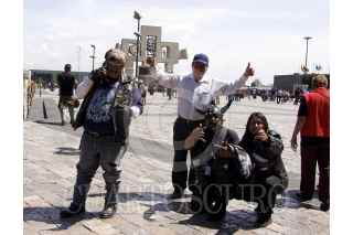 CIUDAD DE MÉXICO, 09OCTUBRE2019.- Dos vendedores platican a las afueras de el metro la Villa, mientras un tercero recorre los al rededores con su producto en mano. FOTO: ROGELIO MORALES /CUARTOSCURO.COM