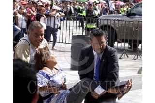 CIUDAD DE MÉXICO, 09OCTUBRE2019.- Tras la misa celebrada en la Basílica de Guadalupe en honor al cantautor José José, una mujer de desmayo en la explanada de la iglesia, por lo que fue auxiliada por dos hombres y llevada con paramédicos. FOTO: ROGELIO MORALES /CUARTOSCURO.COM
