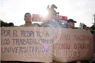 CUERNAVACA, MORELOS, 09OCTUBRE2019.- En cumplimiento con los acuerdos tomados en la Confederación Nacional de Trabajadores Universitarios, trabajadores sindicalizados académicos y administrativos de la Universidad Autónoma del Estado de Morelos, realizaron un paro activo en todas las unidades académicas, para exigir mayor presupuesto para las universidades públicas. FOTO: MARGARITO PÉREZ RETANA /CUARTOSCURO.COM