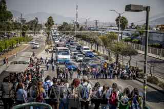 TIJUANA BAJA CALIFORNIA, 10OCTUBRE2019.- Cientos de estudiantes de la Universidad Autónoma de Baja California (UABC) se manifestaron para exigir que el gobernador del Estado, Francisco Vega de la Madrid, liquide el adeudo de mil 600 millones de pesos que tiene con la institución. La protesta se realizó dentro de la universidad y procedió con una marcha a lo largo del bulevar Tecnológico, lugar donde alumnos rompieron una piñata que tenia impreso el rostro del gobernador. FOTO: OMAR MARTÍNEZ /CUARTOSCURO.COM