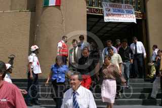 MEXICO D.F. 19SEPTIEMBRE2005.- Cientos de personas participaron en el simulacro para conmemorar los 20 años del sismo. Fueron evacuados empleados y personal del edificio de Loteria Nacional y se colocaron en zonas de seguridad. FOTO: Germàn Romero/CUARTOSCURO.COM