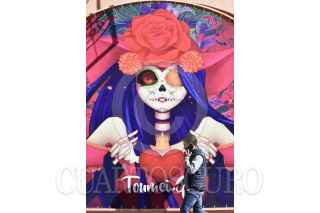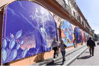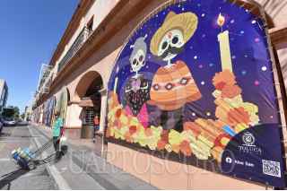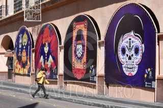 TOLUCA, ESTADO DE MÉXICO, 10OCTUBRE2019.- Los Portales de Toluca se vistieron con diseños por el Día de muertos, trabajos de diseñadores locales muestra la tradición del Día de muertos, los asistentes a la Feria del Alfeñique pueden disfrutar de este recorrido. FOTO: CRISANTA ESPINOSA AGUILAR /CUARTOSCURO.COM