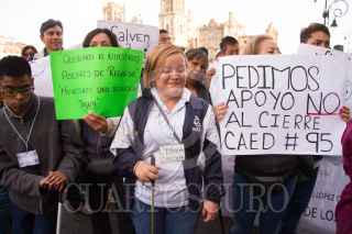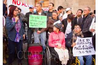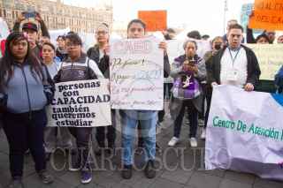 CIUDAD DE MÉXICO, 11OCTUBRE2019.- Integrantes del Centro de Atención a Estudiantes Discapacitados, se manifestaron en las afueras de Palacio Nacional. Leticia Ramírez, atendió a los manifestantes. FOTO: VICTORIA VALTIERRA /CUARTOSCURO.COM
