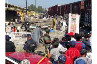 SAN JUAN DEL RÍO, QUERETARO 11OCTUBRE2019.- Un autobús de pasajeros fue impactado por un tren, dejando como saldo 9 personas sin vida y 13 lesionadas, los hechos ocurrieron en en la comunidad de La Valla. FOTO: EDUARDO TREJO /CUARTOSCURO.COM