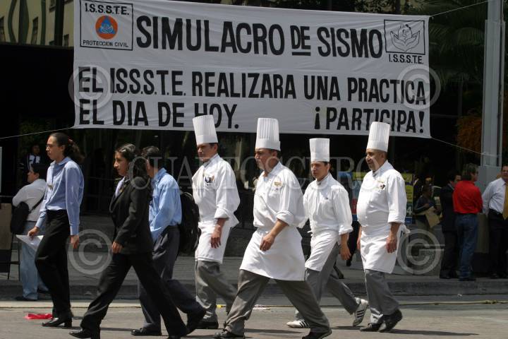 MEXICO D.F. 19SEPTIEMBRE2005.- Cientos de personas participaron en el simulacro para conmemorar los 20 años del sismo. Fueron evacuados empleados y personal del edificio del ISSSTE y del hotel Melia y se colocaron en zonas de seguridad. FOTO: Germàn Romero/CUARTOSCURO.COM