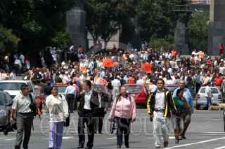 MEXICO D.F. 19SEPTIEMBRE2005.- Cientos de personas participaron en el simulacro para conmemorar los 20 años del sismo. Fueron evacuados empleados y personal del edificio del ISSSTE y del hotel Melia y se colocaron en zonas de seguridad. FOTO: Germàn Romero/CUARTOSCURO.COM