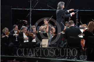 GUANAJUATO, GUANAJUATO, 11OCTUBRE2019.- La Orquesta Sinfónica de Montreal bajo la dirección de Kent Nagano, y con la participación de Verónika Eberle violinista solista invitada, interpretaron Concierto Violín no. 3 en sol mayor de Wolfgang Amadeus Mozart, en la explanada principal de la Alhóndiga de Granaditas, como parte de las actividades musicales de la edición 47 del Festival Internacional Cervantino. FOTO: MARIO JASSO /CUARTOSCURO.COM