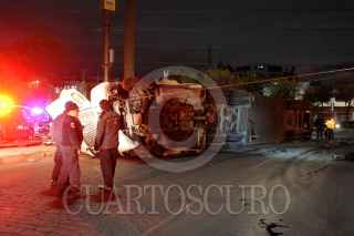 CIUDAD DE MÉXICO., 12OCTUBRE2019.- Un tráiler cargado con rines volcó en la curva de avenida Guerrero en el cruce con avenida de los Insurgentes en la colonia San Simón. Del accidente no hubo personas lesionadas. FOTO: LUIS CARBAYO /CUARTOSCURO.COM