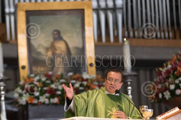 CIUDAD DE MEXICO, 13OCTUBRE2019.- El Padre Jorge Plascencia Ramírez ofició la misa de medio día en la Basilíca de Guadaluope, ante la ausencia del Arzobis Proimado Carlos Aguiar, quien se encuentro en el Vaticano participando en el Sínodo de la Amazonia. En la imagen cientros de feligreses acuden las actividades religiosas del templo ubicado en el Cerro del Tepeyac. FOTO: MOISÉS PABLO /CUARTOSCURO.COM