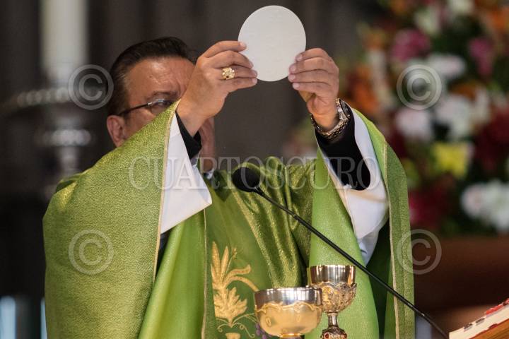 CIUDAD DE MEXICO, 13OCTUBRE2019.- El Padre Jorge Plascencia Ramírez ofició la misa de medio día en la Basilíca de Guadaluope, ante la ausencia del Arzobis Proimado Carlos Aguiar, quien se encuentro en el Vaticano participando en el Sínodo de la Amazonia. En la imagen cientros de feligreses acuden las actividades religiosas del templo ubicado en el Cerro del Tepeyac. FOTO: MOISÉS PABLO /CUARTOSCURO.COM