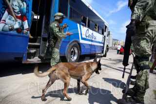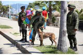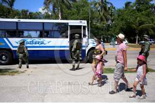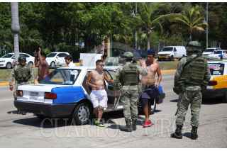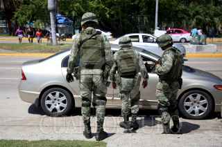 ACAPULCO, GUERRERO, 13OCTUBRE2019.- Soldados del Ejército Mexicano se encuentran en un filtro de seguridad instalado en la avenida Costera, en donde revisaron unidades de transporte público, luego de los ataques en los que unos hombres armados incendiaran unidades. FOTO: CARLOS ALBERTO CARBAJAL /CUARTOSCURO.COM