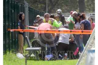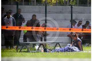CIUDAD DE MEXICO, 13OCTUBRE2019.- Un hombre fue asesinado de al menos cinco balazos en las canchas de fútbol de la Ciudad Deportiva de la Magdalena Mixhuca, alcaldía de Venustiano Carranza. El occiso había jugado un partido de fútbol cuando dos sujetos en una motoneta lo agredieron con arma de fuego, al lugar llegaron sus familiares a reconocerlo. FOTO: ARMANDO MONROY /CUARTOSCURO.COM