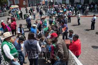 CIUDAD DE MÉXICO, 13OCTUBRE2019.- Esta mañana se realizó la entrega del programa "Apoyos Altépetl"en Plaza Juárez de San Andrés Mixquic, Alcaldía Tláhuac, encabezada por Claudia Sheinbaum Pardo, Jefa de Gobierno. Al finalizar los habitantes de Mixquic hicieron una fila para hacer su registro al programa y recibir el apoyo. FOTO: MAGDALENA MONTIEL /CUARTOSCURO.COM