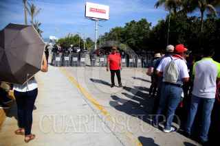 ACAPULCO, GUERRERO, 14OCTUBRE2019.- Policías antimotines amagaron con desalojar a maestros de la zona escolar numero 11 que bloqueaban el boulevard de Las Naciones en Acapulco, los maestros bloquearon por alrededor de cinco horas la vialidad para exigir a las autoridades pagos incumplidos y nombramientos. FOTO: CARLOS ALBERTO CARBAJAL /CUARTOSCURO.COM