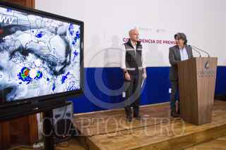 CIUDAD DE MÉXICO, 15OCTUBRE2019.- Jorge Zavala Hidalgo, del Sistema Meteorológico Nacional y David León Romero, de Protección Civil, hablaron sobre las condiciones climáticas que afectaran a varios estados del Sureste del país, y dieron a conocer las medidas que debe de tomar la población para no verse afectada. FOTO: VICTORIA VALTIERRA /CUARTOSCURO.COM