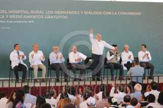 SAN LUIS POTOSÍ, S.L.P., Andrés Manuel López obrador, presidente de México; Zoé Robledo, director del Instituto Mexicano del Seguro Social (IMMS), y Jorge Alcocer Varela, secretario de Salud, encabezaron la inauguración de la Clínica "Los Hernández". FOTO: MARCELO PALACIOS /CUARTOSCURO.COM