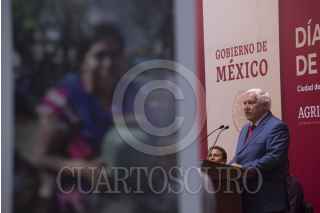 CIUDAD DE MÉXICO, 15OCTUBRE2019.- La secretaría de Agricultura y Desarrollo Rural (SADER), llevó a cabo la conmemoración del Día Internacional de la Mujer Rural. El evento fue encabezado por Víctor Villalobos Arámbula, titular de la Sader, y fue acompañado del titular del Instituto Nacional de las Mujeres (Inmujeres), Nadine Gasman, el representante del IICA (Instituto Interamericano de Cooperación para la Agricultura), Diego Montenegro, la presidenta de Corteva Agriscience México y la región Mesoandina, Ana Claudia Cerasoli, y productoras de diferentes organismos. Villalobos Arámbula, destacó la importancia de unir esfuerzos para enfrentar los retos y oportunidades que representa para el sector agropecuario la inclusión de mujeres en proyectos productivos que ayudarán a legitimar sus derechos en el sector rural, objetivo en el que el Gobierno de México instrumenta líneas de acción en materia de equidad de género. FOTO: SADER /CUARTOSCURO.COM