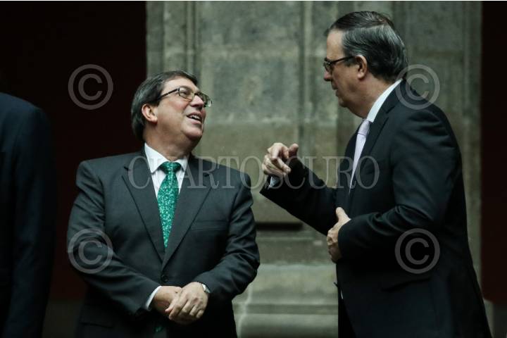 CIUDAD DE MÉXICO, 17OCTUBRE2019.- Miguel Díaz-Canel, presidente de Cuba; Andrés Manuel López Obrador, presidente de México, y Beatriz Gutiérrez Müller, presidenta honoraria de la Coordinación de Memoria Histórica y Cultural de México y primera dama mexicana, durante la ceremonia de bienvenida al mandatario cubano. FOTO: GALO CAÑAS /CUARTOSCURO.COM