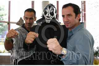 MEXICO D.F. 20SEPTIEMBRE2005.- En los Estudios Churubuscos se presento la pelicula El Angel, la muerte y el Cazador con Julio Bracho, la Parca y Plutarco Haza FOTO: Leonardo Casas/CUARTOSCURO.COM