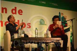 CIUDAD DE MÉXICO, 18OCTUBRE2019.- En el marco de la Feria internacional del Libro, en el Foro Visión e los Vencidos, se llevó a cabo la conferencia un homenaje al escritor José Agustín, el actor Daniel Jimenez Cacho y su hijo participaron en el evento. FOTO: PEDRO ANZA /CUARTOSCURO.COM