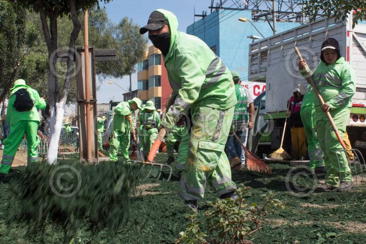 CIUDAD DE MÉXICO, 19OCTUBRE2019.- Esta mañana se llevo a cabo la Jornada de “Sábado de Tequio", encabezada por la Jefa de Gobierno, Claudia Sheinbaum Pardo. En la imagen personal femenil de limpieza realiza trabajo de mantenimiento sobre el camellón de la calle Valsequillo, esquina con Calle 7, Pantitlán. FOTO: MAGDALENA MONTIEL /CUARTOSCURO.COM