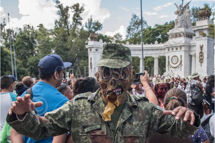 CIUDAD DE MÉXICO, 19OCTUBRE2019.- Esta tarde se llevo a cabo la Marcha Zombie 2019, la cual partió del Monumento a la Revolución a la plancha del Zócalo Capitalino. FOTO: MARIO JASSO /CUARTOSCURO.COM