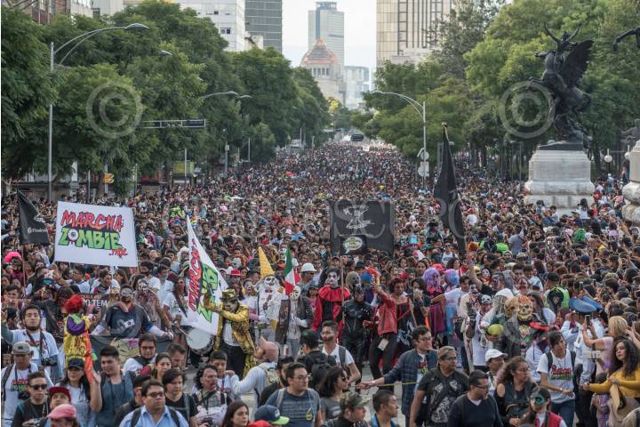 CIUDAD DE MÉXICO, 19OCTUBRE2019.- Esta tarde se llevo a cabo la Marcha Zombie 2019, la cual partió del Monumento a la Revolución a la plancha del Zócalo Capitalino. FOTO: MARIO JASSO /CUARTOSCURO.COM