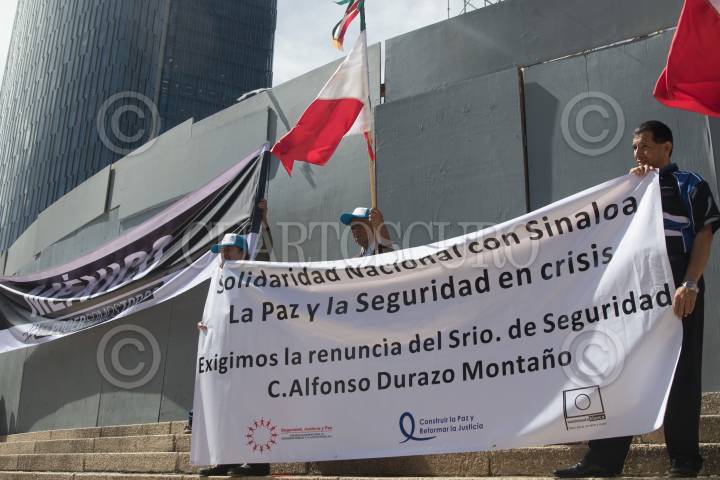 CIUDAD DE MÉXICO, 20OCTUBRE2019.- Integrantes de la organización #ElPoderSomosTodos que encabeza José Antonio Ortega Sánchez, Presidente del Consejo Ciudadano para la Seguridad Pública y la Justicia Penal, AC, se manifestaron en avenida Reforma, a la altura del Angel de la Independencia, para pedir la renuncia del secretario de seguridad Alfonso Durazo Montaño, tras el fallido operativo en Culiacán, Sinaloa, en donde se detuvo en un primer momento a Ovidio Guzmán López, hijo del narcotraficantes Joaquín Guzmán Loera, para después ser liberado al verse superados en número los elementos del ejercito que participaron en la operación. FOTO: MOISÉS PABLO /CUARTOSCURO.COM