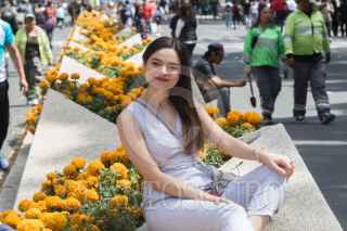 CIUDAD DE MÉXICO, 20OCTUBRE2019.- Las personas aprovechan el colorido de los camellones de avenida Reforma, en donde trabajadores del gobierno capitalino sembraron cientos de flores de cempasúchil, para tomarse una foto. FOTO: MOISÉS PABLO /CUARTOSCURO.COM