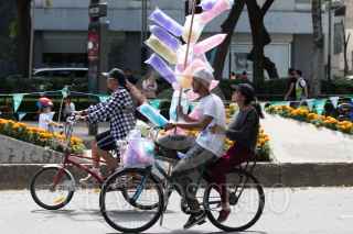 CIUDAD DE MÉXICO, 20OCTUBRE2019.- Paseando en bicicleta con algodones de azúcar en avenida Reforma. FOTO: MOISÉS PABLO /CUARTOSCURO.COM