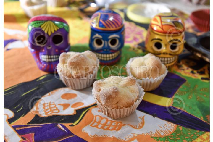 TOLUCA, ESTADO DE MÉXICO, 21OCTUBRE2019.- Desde hace tres años Eduardo Limón y su esposa Brenda Naranjo preparan las mantehojaldras o mantemuertas, inspiradas en las manteconchas, ellos comienzan sus ventas desde el 17 de septiembre pero conforme se acerca la celebración del Día de Muertos los pedidos aumentan, llegando a hacer más de tres mil piezas, los ingredientes de este pan son los mismos para elaborar un pan de muerto solo que va en un capacillo de papel, cada pieza cuesta 6 pesos y las rellenas 7 pesos, llegan a vender en algunos bazares de la ciudad de Toluca. FOTO: CRISANTA ESPINOSA AGUILAR /CUARTOSCURO.COM