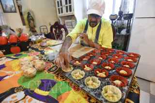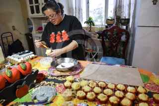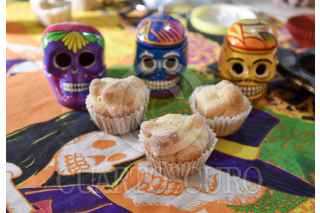 TOLUCA, ESTADO DE MÉXICO, 21OCTUBRE2019.- Desde hace tres años Eduardo Limón y su esposa Brenda Naranjo preparan las mantehojaldras o mantemuertas, inspiradas en las manteconchas, ellos comienzan sus ventas desde el 17 de septiembre pero conforme se acerca la celebración del Día de Muertos los pedidos aumentan, llegando a hacer más de tres mil piezas, los ingredientes de este pan son los mismos para elaborar un pan de muerto solo que va en un capacillo de papel, cada pieza cuesta 6 pesos y las rellenas 7 pesos, llegan a vender en algunos bazares de la ciudad de Toluca. FOTO: CRISANTA ESPINOSA AGUILAR /CUARTOSCURO.COM
