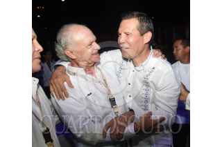 CANCÚN, QUINTANA ROO, 21OCTUBRE2019.- Los boxeadores boxeador Daniel Zaragoza y Cristian Mijares durante la inauguración del la 57 Convención del Consejo Mundial de Boxeo. FOTO: ELIZABETH RUIZ /CUARTOSCURO.COM