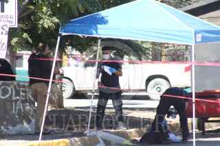 CIUDAD JUÁREZ, CHIHUAHUA, 21OCTUBRE2019.- Un hombre fue privado de la vida a media calle, a un costado de las oficinas de Gobierno del Estado, ubicada en Abraham Lincoln y Américas Hasta el momento se desconoce la identidad del hombre, y se informó que vestía pantalón oscuro y camisa blanca y un mandil. En el lugar trascendió que la víctima trabajaba como mesero en el restaurante Sirena Morena. Al lugar llegaron elementos de la FGE para realizar las primeras investigaciones, y acordonar el área. FOTO: NACHO RUIZ /CUARTOSCURO.COM