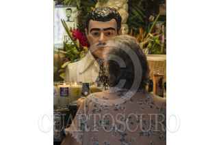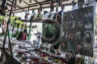 CULIACÁN , SINALOA, 21OCTUBRE2019.- Personas acuden a venerar a Jesús Malverde, el llamado "Santo de lo pobres y de las causas difíciles”. Malverde fue adoptado en los años 80's por la cultura del narco. La capilla de ubica en la capital sinaloense, sobre la avenida Independencia. FOTO: OMAR MARTÍNEZ /CUARTOSCURO.COM
