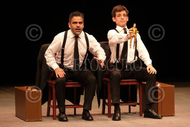 GUANAJUATO, GUANAJUATO, 22OCTUBRE2019.- La obra "El dolor debajo del sombrero", dirigida por el dramaturgo Martín Zapata; es una muestra de Guerrero, estado invitado de honor, en la que dos hombres viven encerrados en un escenario, tratan de recordar porqué están ahí y después conocen a una misteriosa mujer que les abrirá los ojos acerca de su verdadera condición. Se presentó ayer en el Teatro Cervantes, como parte de las actividades culturales de la 47 Edición del Festival Internacional Cervantino. FOTO: GRACIELA LÓPEZ /CUARTOSCURO.COM