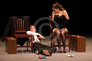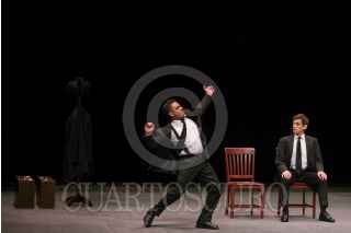 GUANAJUATO, GUANAJUATO, 22OCTUBRE2019.- La obra "El dolor debajo del sombrero", dirigida por el dramaturgo Martín Zapata; es una muestra de Guerrero, estado invitado de honor, en la que dos hombres viven encerrados en un escenario, tratan de recordar porqué están ahí y después conocen a una misteriosa mujer que les abrirá los ojos acerca de su verdadera condición. Se presentó ayer en el Teatro Cervantes, como parte de las actividades culturales de la 47 Edición del Festival Internacional Cervantino. FOTO: GRACIELA LÓPEZ /CUARTOSCURO.COM