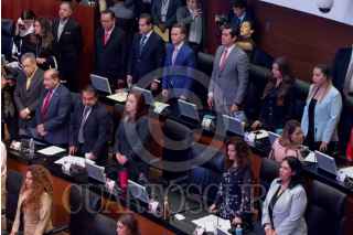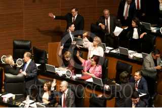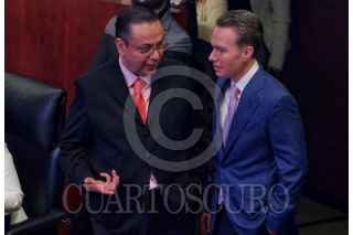 CIUDAD DE MÉXICO, 22OCTUBRE2019.- Ricardo Monreal, coordinador del Grupo parlamentario Morena y Damián Zepeda, senador del PAN, durante sesión Ordinaria en la Cámara de Senadores. FOTO: ANDREA MURCIA /CUARTOSCURO.COM