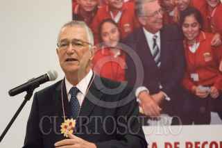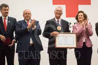 CIUDAD DE MÉXICO, 22OCTUBRE2019.- El empresario dueño de TV Azteca, Ricardo Salinas Pliego, recibió de manos de Fernando Suinaga Cárdenas, una medalla y reconocimiento de "Distinción Humanitaria", en el auditorio de la Cruz Roja Mexicana. FOTO: VICTORIA VALTIERRA /CUARTOSCURO.COM