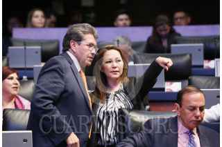 CIUDAD DE MÉXICO, 22OCTUBRE2019.- Los senadores Xóchilt Gálvez y Julen Rementería Del Puerto, durante la sesión en la Cámara de Senadores, en la que se aprobó la Ley General de Salud. FOTO: CUARTOSCURO.COM