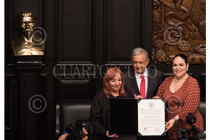 CIUDAD DE MÉXICO, 23OCTUBRE2019.- Rosario Ibarra de Piedra, fundadora del Comité Eureka, recibió la medalla Belisario Domínguez por parte del Senado. Recibieron el reconocimiento sus hijas Claudia Piedra Ibarra y Rosario Piedra Ibarra. En el acto estuvieron presentes Andrés Manuel López Obrador, Presidente de México, y Mónica Fernández, presidenta del Senado. FOTO: MOISÉS PABLO /CUARTOSCURO.COM