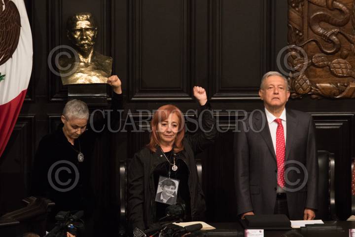 CIUDAD DE MÉXICO, 23OCTUBRE2019.- Rosario Ibarra de Piedra, fundadora del Comité Eureka, recibió la medalla Belisario Domínguez por parte del Senado. Recibieron el reconocimiento sus hijas Claudia Piedra Ibarra y Rosario Piedra Ibarra. En el acto estuvieron presentes Andrés Manuel López Obrador, Presidente de México, y Mónica Fernández, presidenta del Senado. FOTO: MOISÉS PABLO /CUARTOSCURO.COM