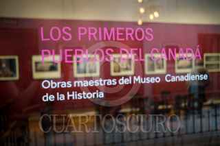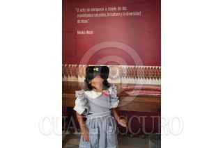 GUANAJUATO, GUANAJUATO, 23OCTUBRE2019.- La exhibición "Los primeros pueblos de Canadá, obras maestras del museo Canadiense de la Historia", es una exposición de fotografías que muestra las piezas artesanales y artísticas indígenas de la vida cotidiana de los pueblos originarios, la cual se encuentra en la Galería Mazahua, en Casa Canadá; en el marco de la 47 Edición del Festival Internacional Cervantino. En la imagen, una niña percibe cómo funcionan las máquinas de Canadá, a través de un gadgets de realidad virtual. FOTO: GRACIELA LÓPEZ /CUARTOSCURO.COM