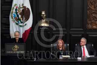 CIUDAD DE MÉXICO, 23OCTUBRE2019.- Claudia Piedra Piedra y Rosario Piedra Ibarra, hijas de Rosario Ibarra de Piedra, fundadora del Comité Eureka, recibieron en su nombre la medalla Belisario Domínguez que otorga el Senado de la República, a la que asistió como invitado de honor Andrés Manuel López Obrador, Presidente de México. Al finalizar su discurso Claudia Ibarra, quien leyó la carta que mando Doña Rosario, le pidió al Ejecutivo Federal que su madre le pedía que le resguardará la medalla hasta el día en que le regresará a su hijo, y la de todos los desaparecidos del país. FOTO: MOISÉS PABLO /CUARTOSCURO.COM